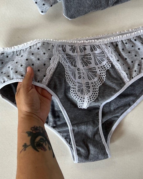 bombacha algodón gris melange, bombacha con puntilla blanca, ropa interior personalizada, bombacha hecha a medida, bombacha cómoda diaria