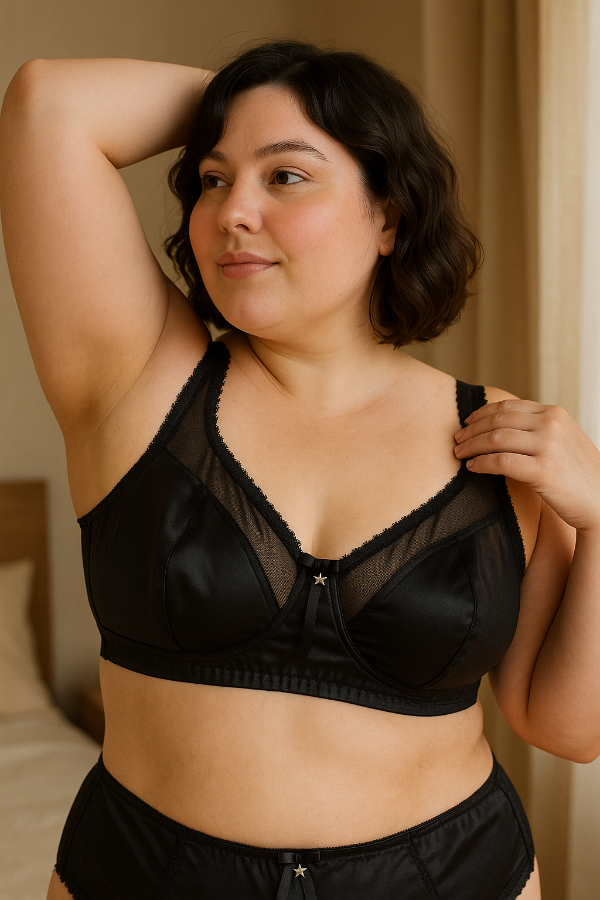corpiño sin aro plus size, corpiño sin aro a medida, lencería hecha a medida, corpiño busto grande, ropa interior artesanal, LYS Lencería, hecho a mano Argentina, corpiño cómodo busto pesado, corpiño de soporte natural.