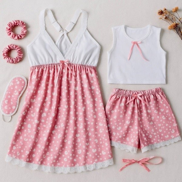 💞 Antifaz y scrunchie combinados, confeccionados con los mismos géneros suaves.