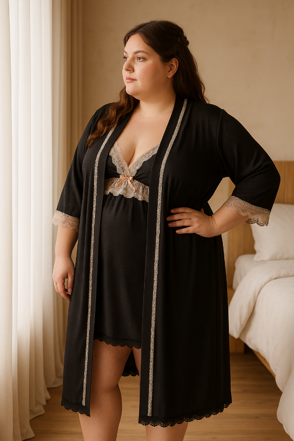 Ideal para quienes buscan un camisolín plus size cómodo y sofisticado, pensado para el descanso, para sentirte linda en casa o para acompañar una bata de la misma línea.