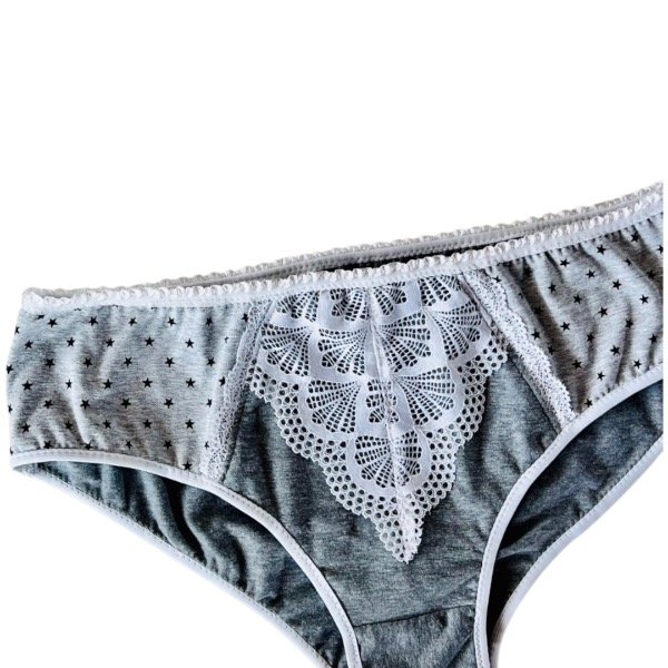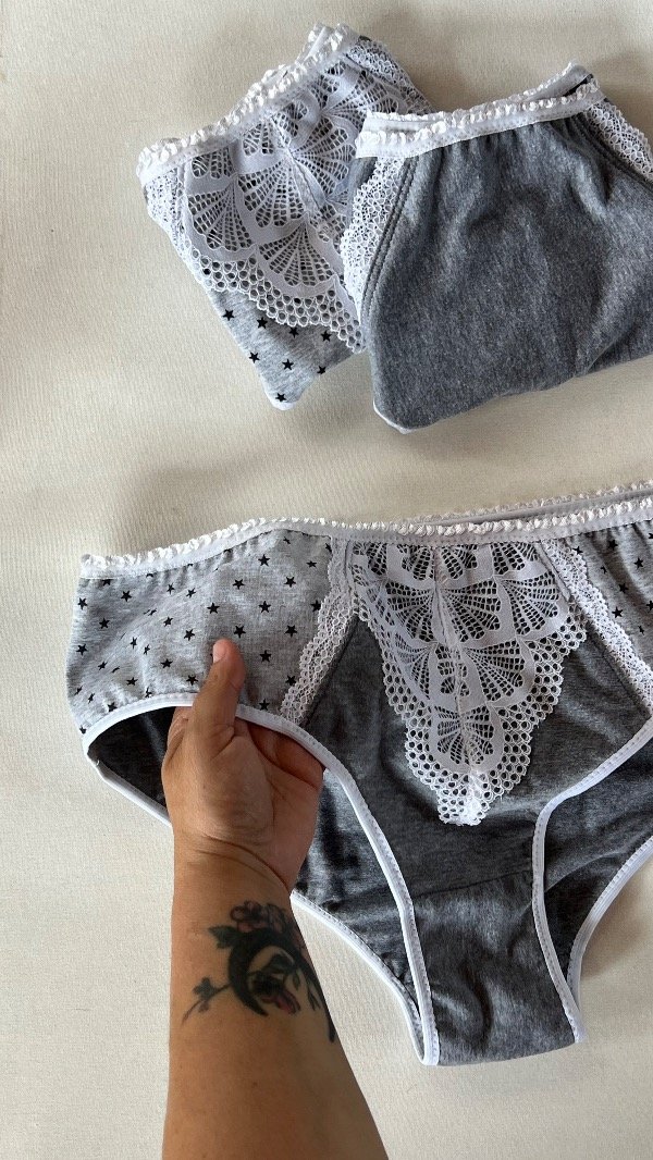 bombacha algodón gris melange, bombacha con puntilla blanca, ropa interior personalizada, bombacha hecha a medida, bombacha cómoda diaria