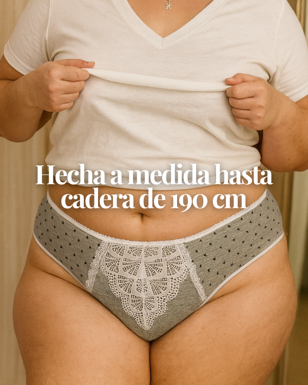 bombacha algodón gris melange, bombacha con puntilla blanca, ropa interior personalizada, bombacha hecha a medida, bombacha cómoda diaria