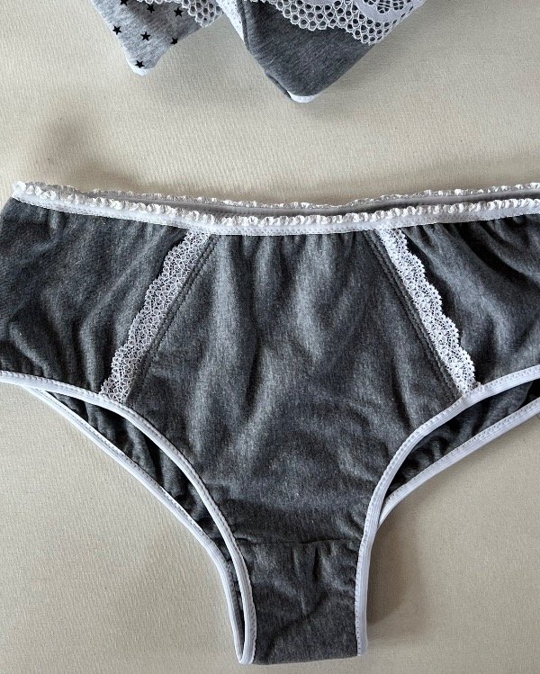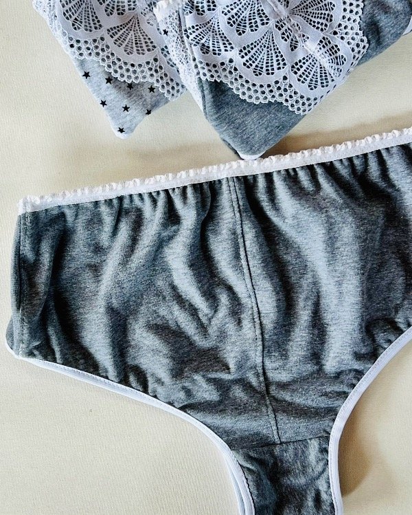 bombacha algodón gris melange, bombacha con puntilla blanca, ropa interior personalizada, bombacha hecha a medida, bombacha cómoda diaria