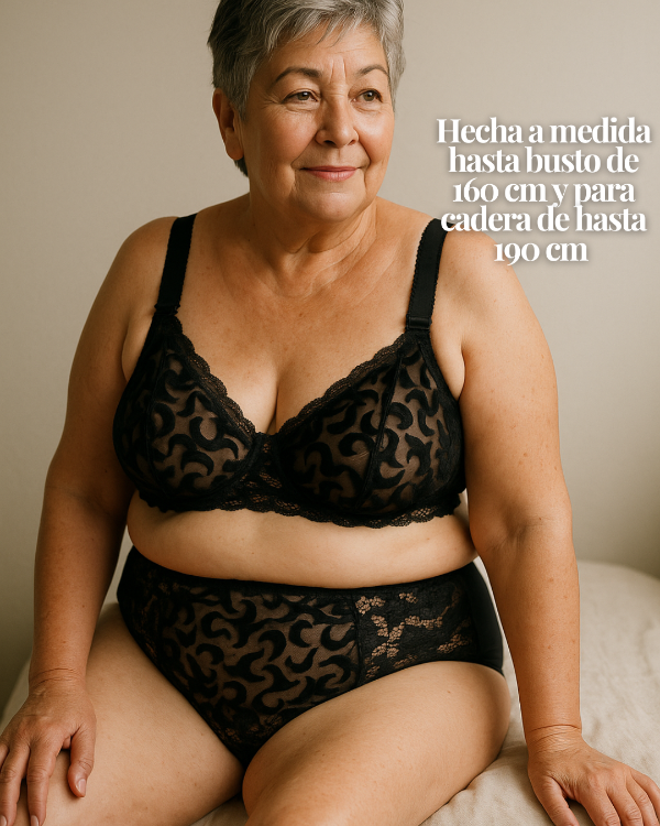 Hecho artesanalmente a tu medida —hasta 160 cm de busto—, combina estructura, firmeza y elegancia, logrando un calce que se adapta a tu cuerpo como una segunda piel.