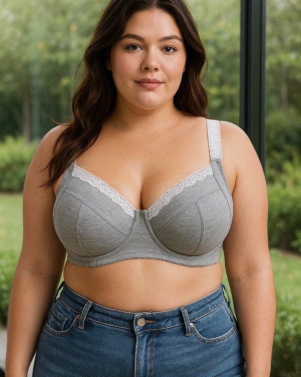 Diseños plus Size, Corpiño con o sin aro en algodón con lycra premium, doble tela por completo, se destaca por su delicado diseño en color visón con detalles en puntilla que aporta un toque de frescura y elegancia.