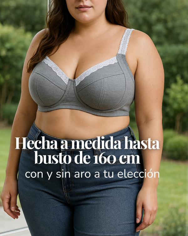 Copa doble tela, añadiendo un contraste sutil y sofisticado, ofrece un sostén óptimo y confort, Diseñado completamente a medida, es ideal para tallas de hasta 160 cm de busto, asegurando un ajuste perfecto y personalizado. Perfecto para quienes buscan una prenda que combine estilo y comodidad.